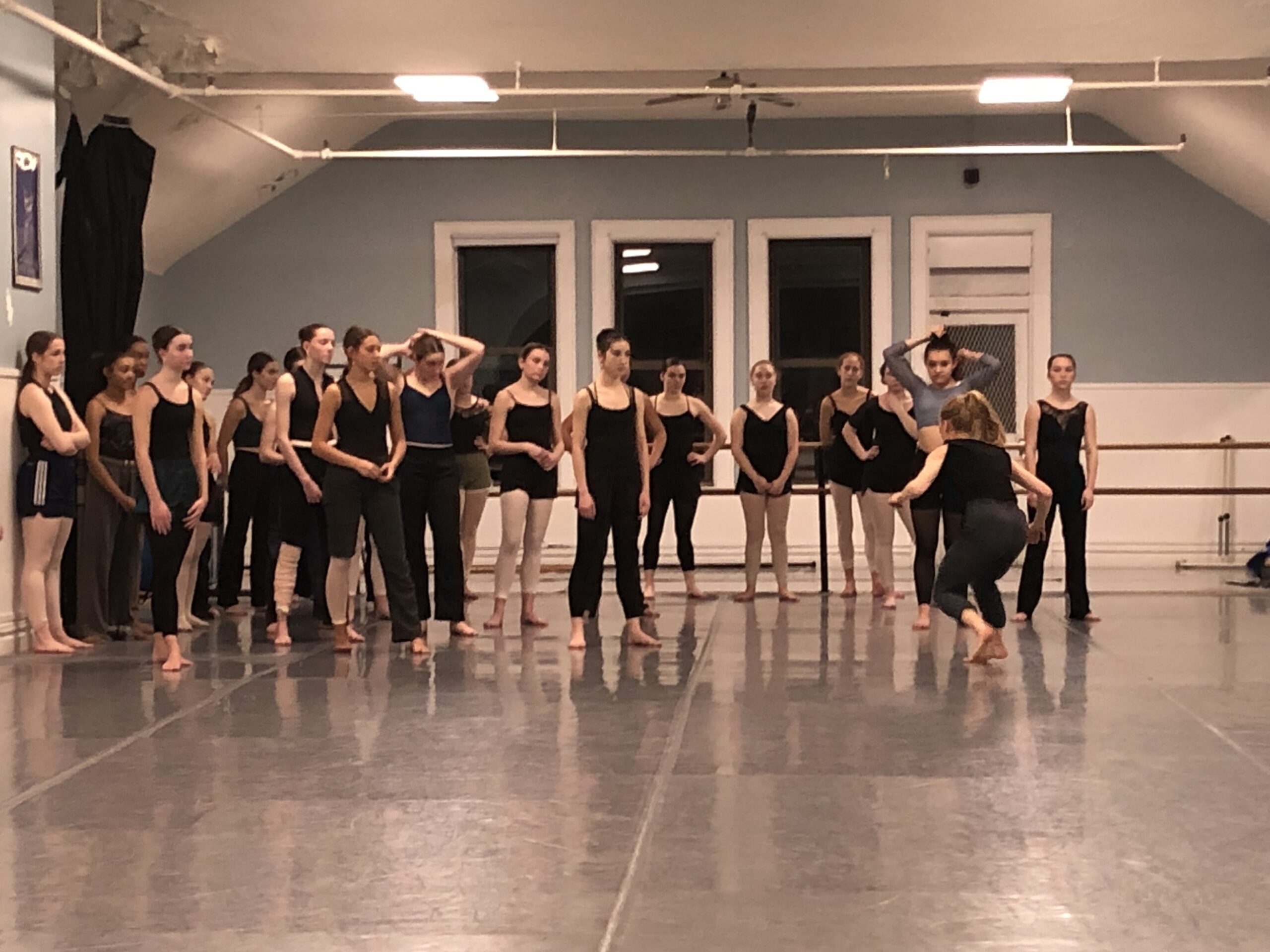 On February 6, we were excited and honored to offer our Company the experience of a master class taught by professionals from MOMIX, a dance company based in Washington, Connecticut, founded in  1981 by Choreographer Moses Pendleton. The company is named after a solo, “Momix,” that  Pendleton created for the 1980 Winter Olympics in Lake Placid. An offshoot of the dance company Pilobolus, which Pendleton co-founded in 1971, MOMIX presents works that combine acrobatics, dance, gymnastics.